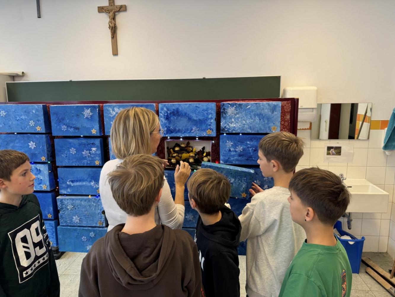 Die Idee dahinter ist einfach, aber wirkungsvoll: Jeden Tag im Advent öffnet eine Klasse den Karton einer anderen und überrascht sie mit einer Aufmerksamkeit. Wenn die Geschenke zu groß sind, finden die Kinder ein Kuvert und suchen das Geschenk im Schulhaus.