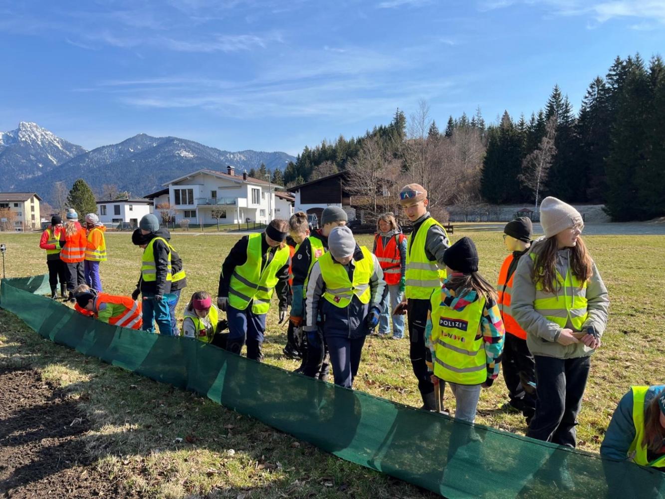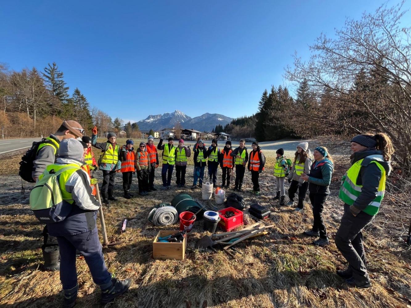 Ein besonderer Tag erwartete die Schüler:innen der Klasse 2B bei einem Biologieprojekt in Ehenbichl. In Zusammenarbeit mit dem Naturpark Tiroler Lech beteiligten sie sich an einer wichtigen Naturschutzaktion: dem Aufstellen eines Amphibienzauns.