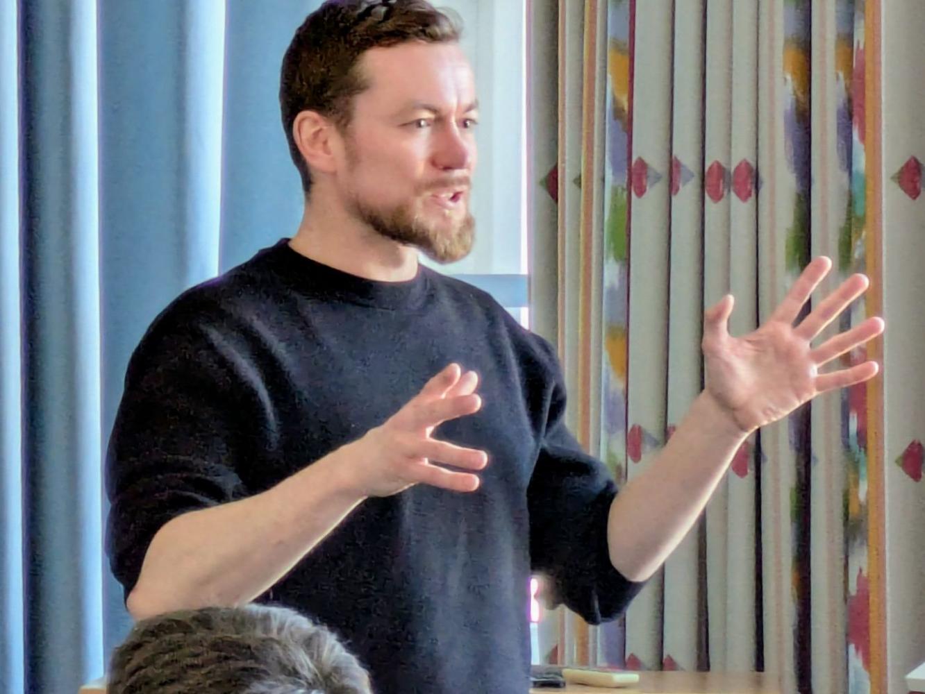 Diesen Dienstag erzählte der Autor zuerst von seinen Erfahrungen bei der Umgestaltung seines Romans Verschwinden in Lawinen für die Bühne und von den intensiven sechswöchigen Proben.