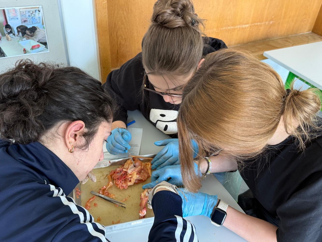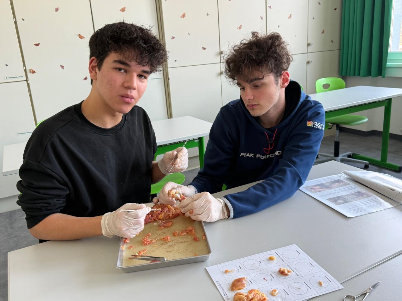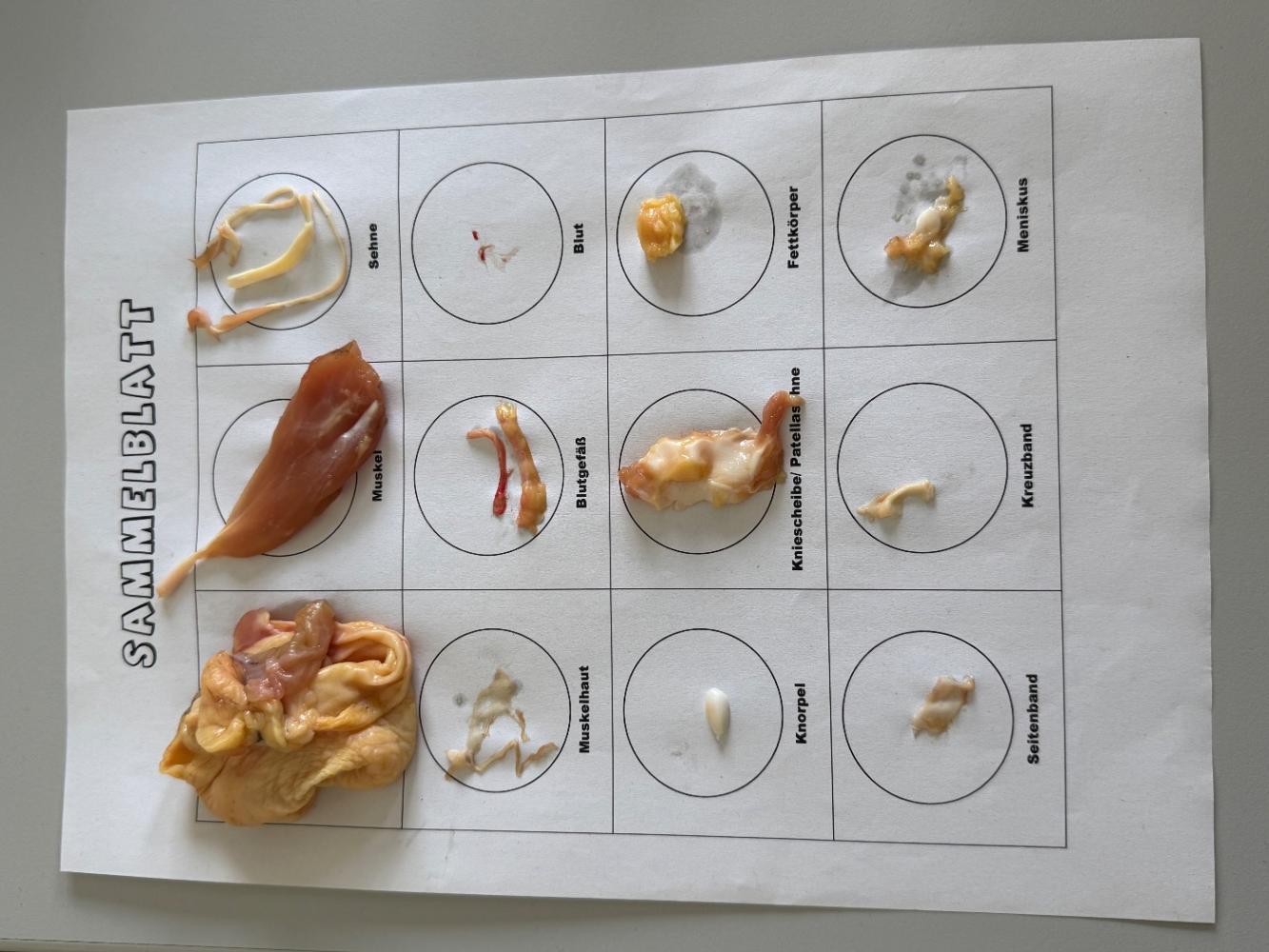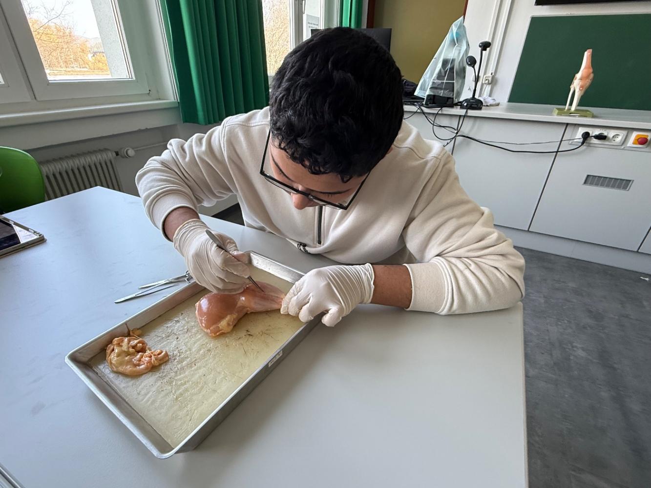 Die Untersuchung des Hühnerkniegelenks war für die Schüler:innen eine lehrreiche praktische Erfahrung. Durch genaues und sorgfältiges Arbeiten konnten sie den Aufbau eines Gelenks besser verstehen und ihr biologisches Wissen vertiefen.