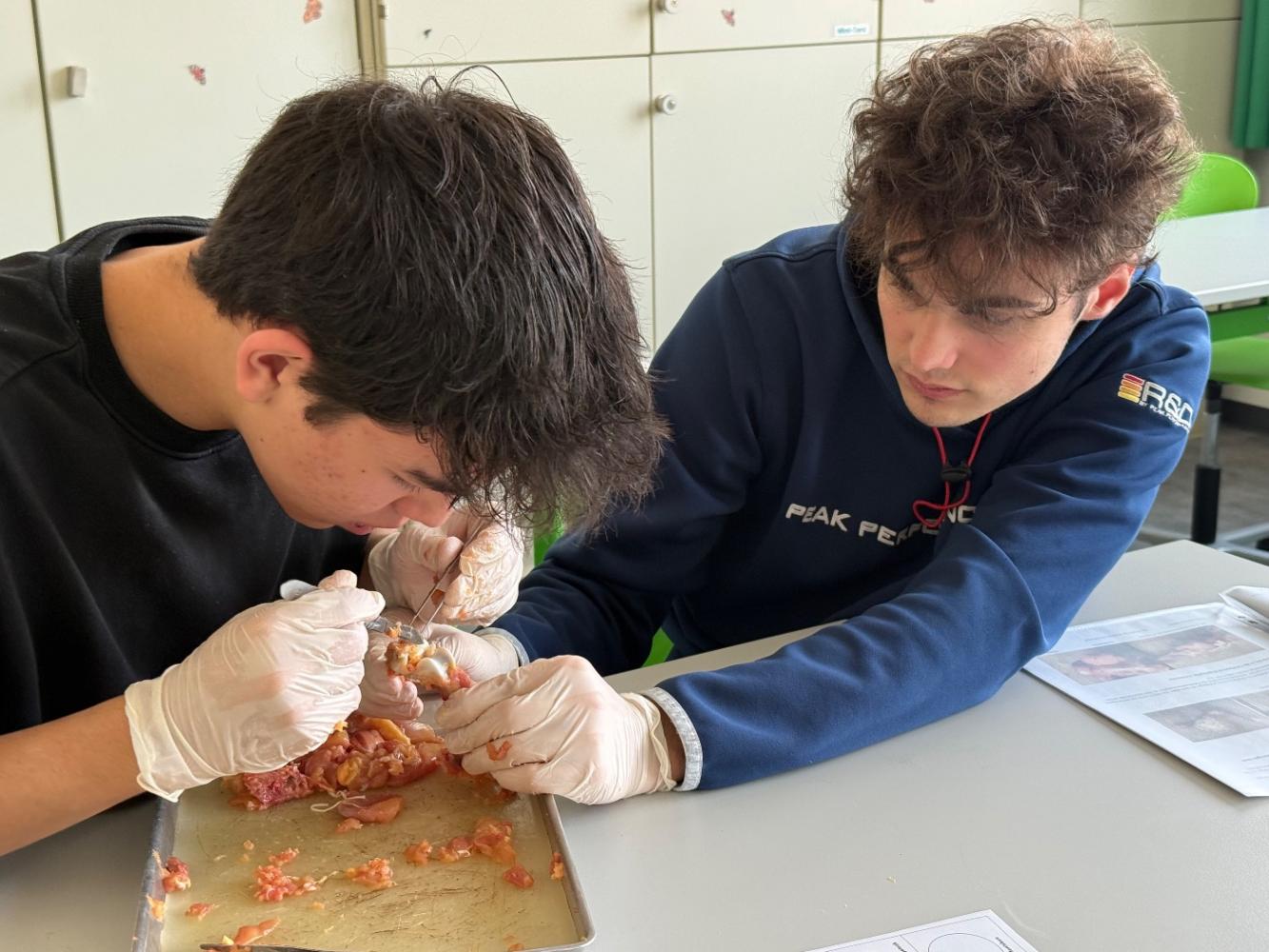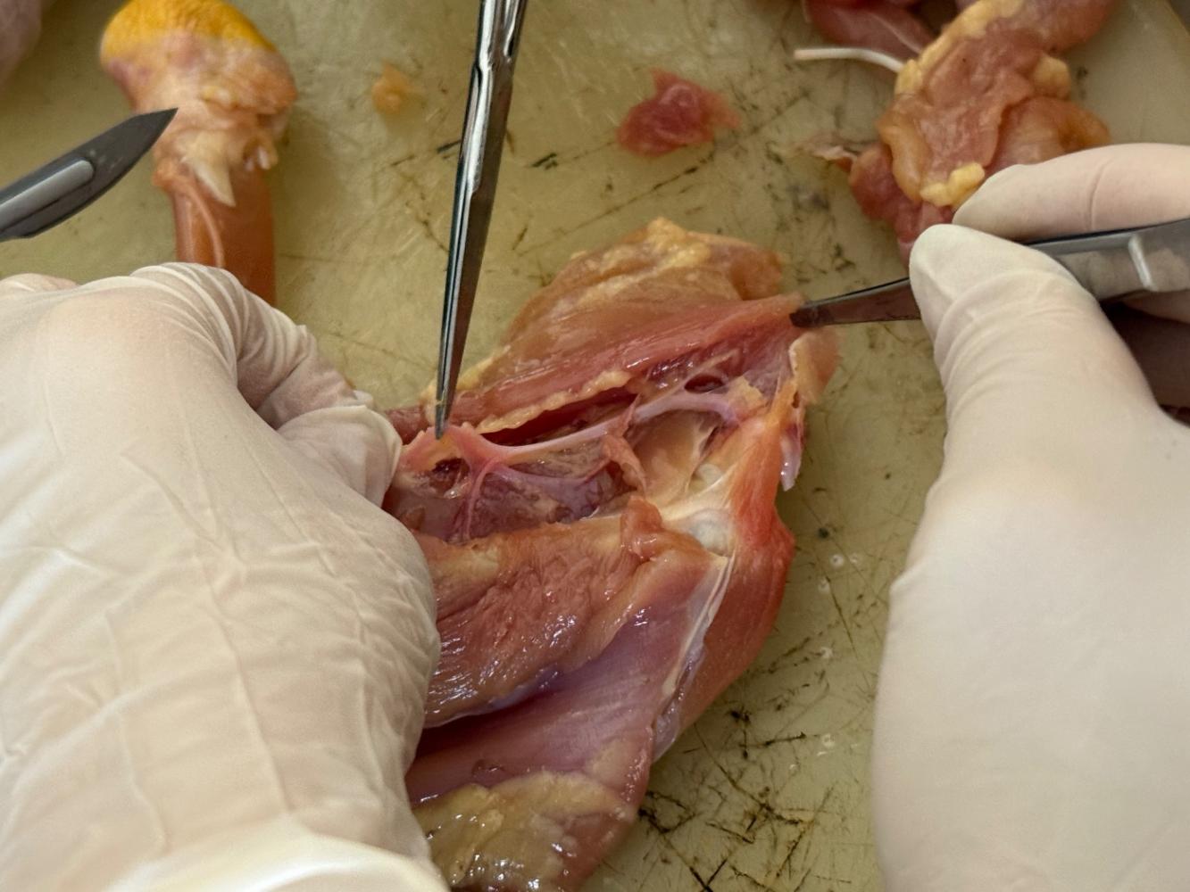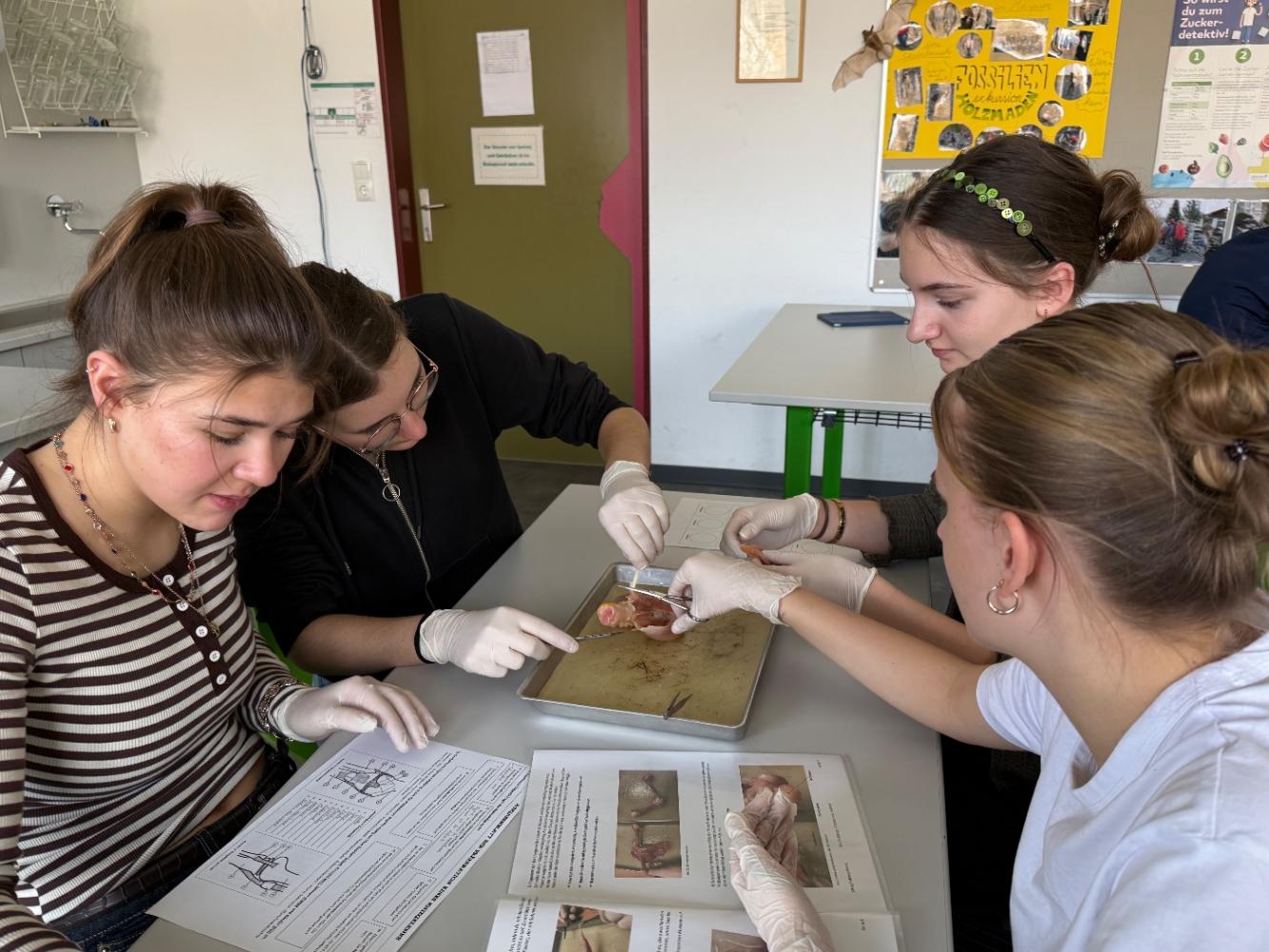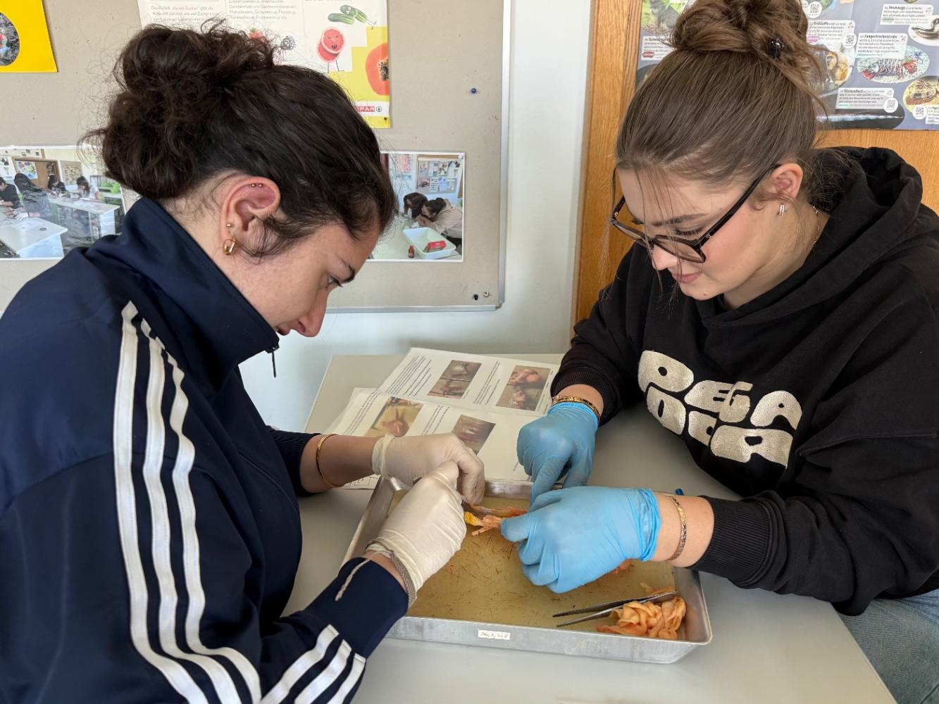 Die Untersuchung des Hühnerkniegelenks war für die Schüler:innen eine lehrreiche praktische Erfahrung. Durch genaues und sorgfältiges Arbeiten konnten sie den Aufbau eines Gelenks besser verstehen und ihr biologisches Wissen vertiefen.