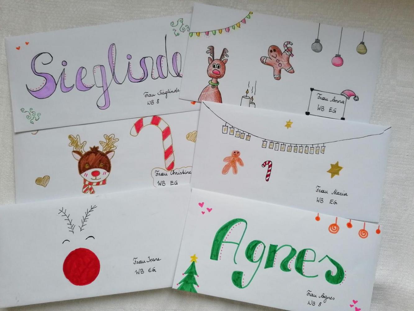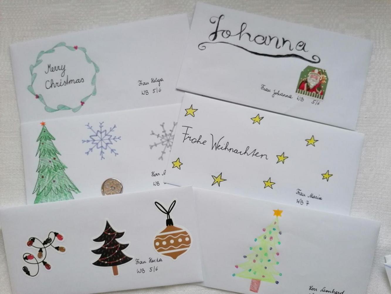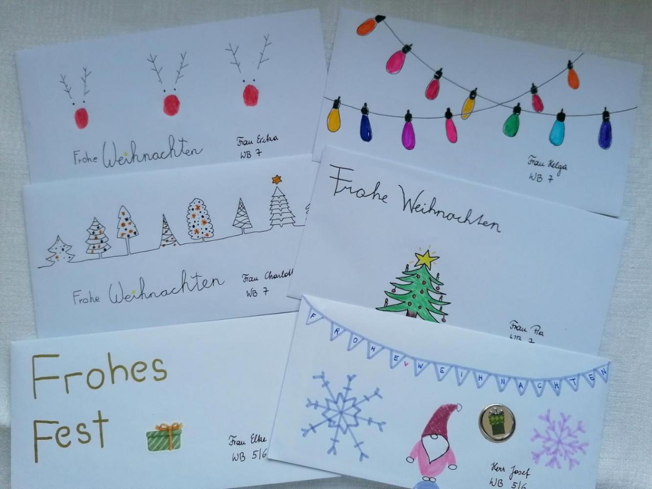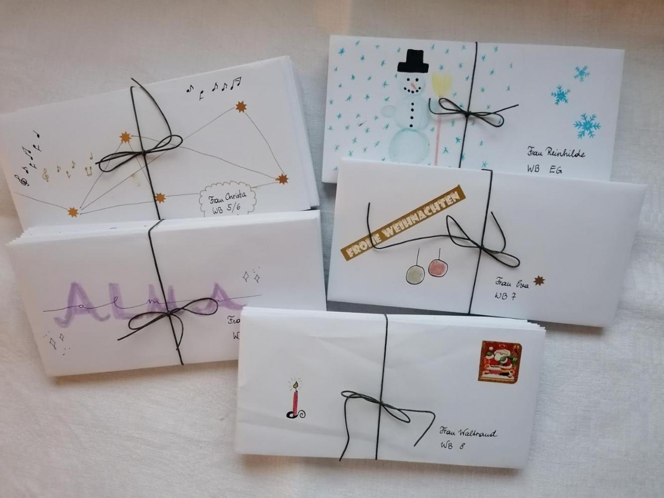 Seit 2020, als die Pandemie einen Besuch im Pflegeheim vereitelte, schickt die JRK-Gruppe persönlich gestaltete Weihnachtskarten an die Bewohnerinnen des Pflegeheims. Heuer erhielten wir Unterstützung von den Religionsklassen 5ABC und 3C, damit für jede Karte genug Energie und Freude bleibt. Seit wir für diese Aktion vor drei Jahren den DDr.-Hans-Lauda-Preis erhielten, ist uns diese Aktion nicht nur eine Verpflichtung, sondern auch eine Herzensangelegenheit.