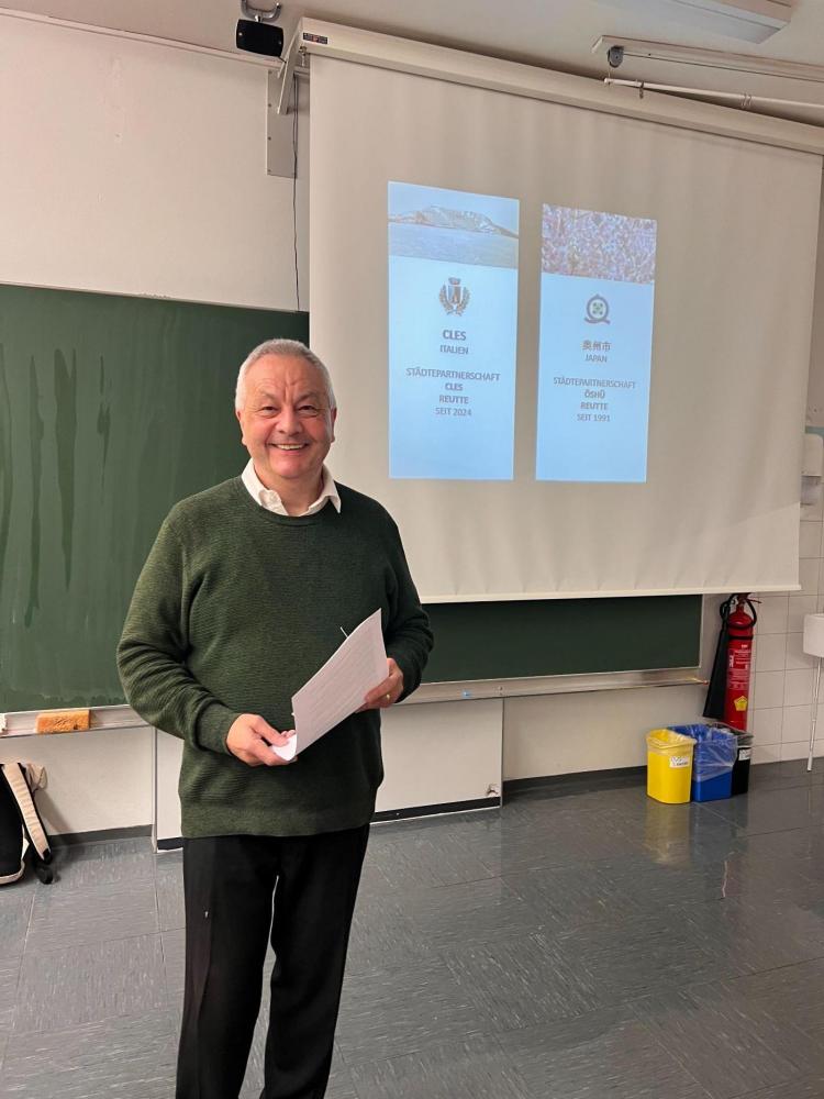 Gemeinderat Robert Pacher sprach über Cles, die Partnerstadt von Reutte.