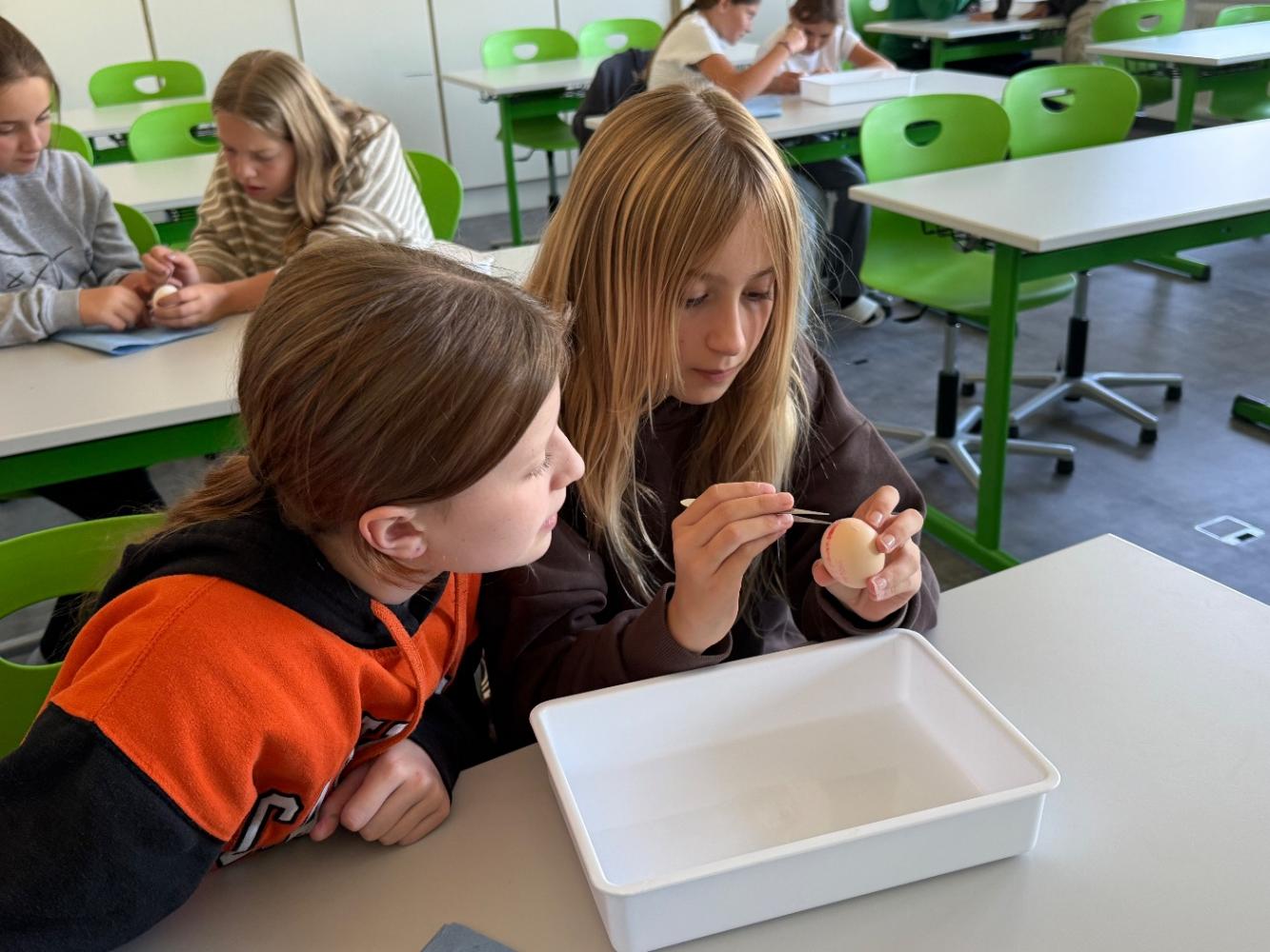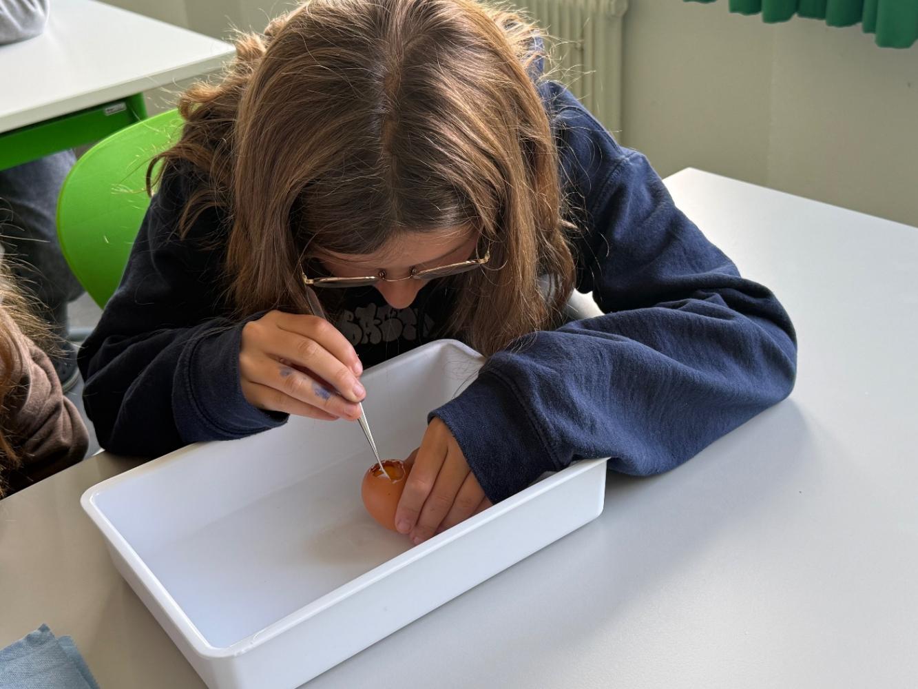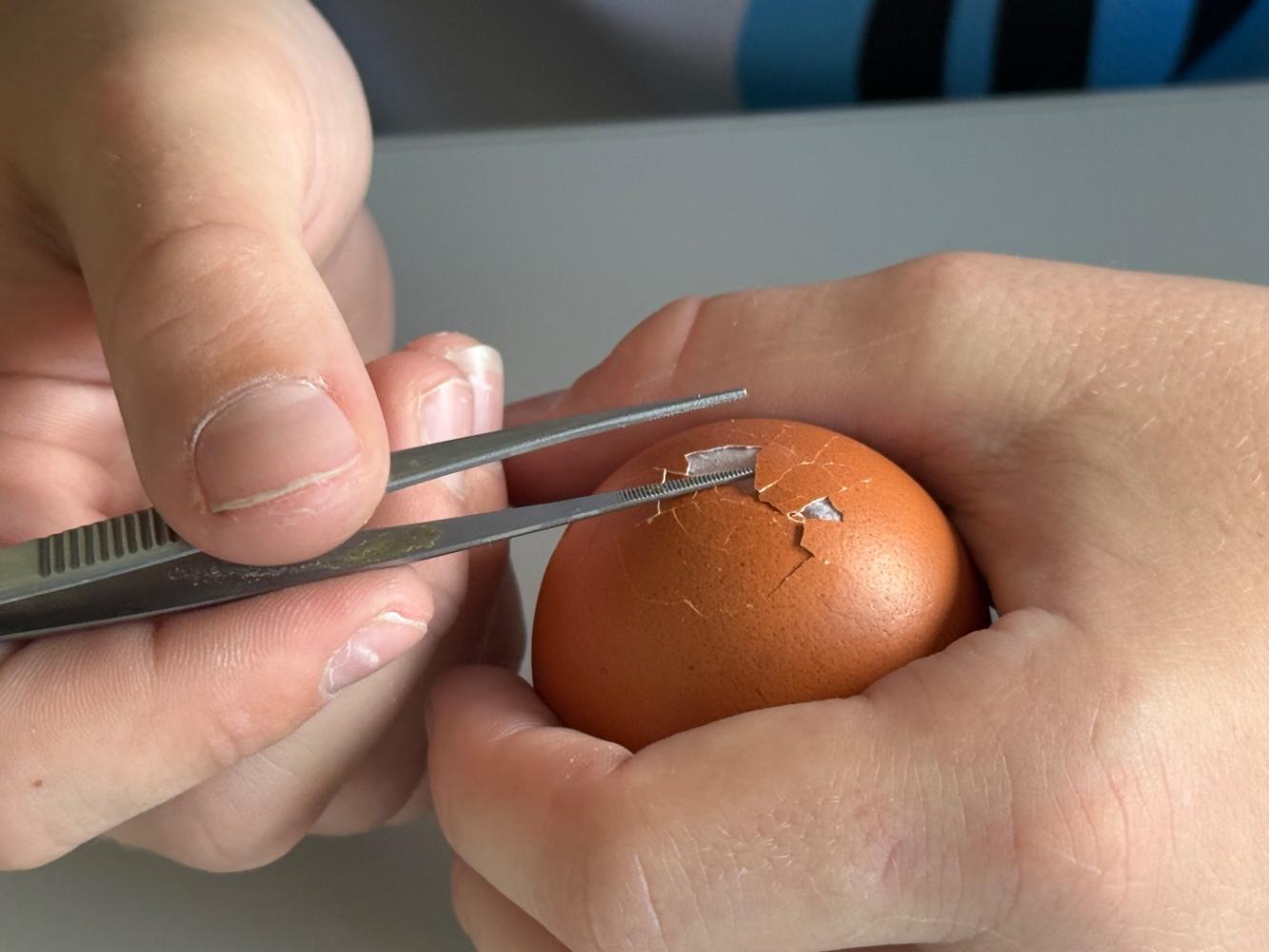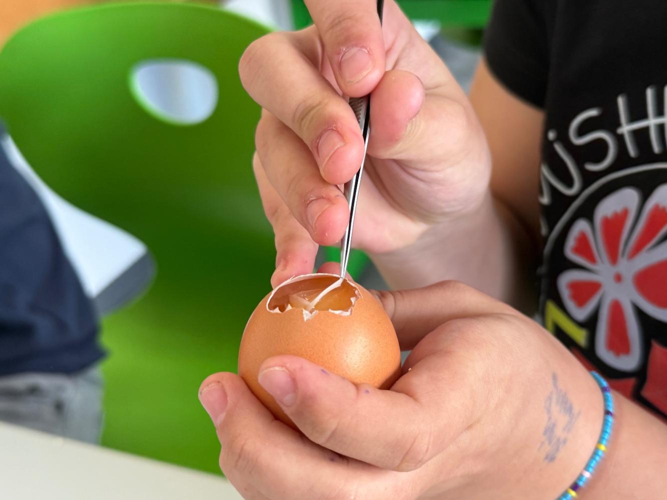 Mit nur wenigen Handgriffen entdeckten die Schüler:innen Strukturen, die beim alltäglichen Gebrauch von Eiern der Aufmerksamkeit entgehen.