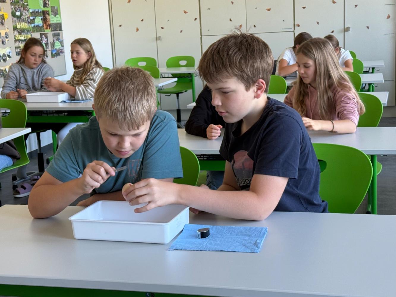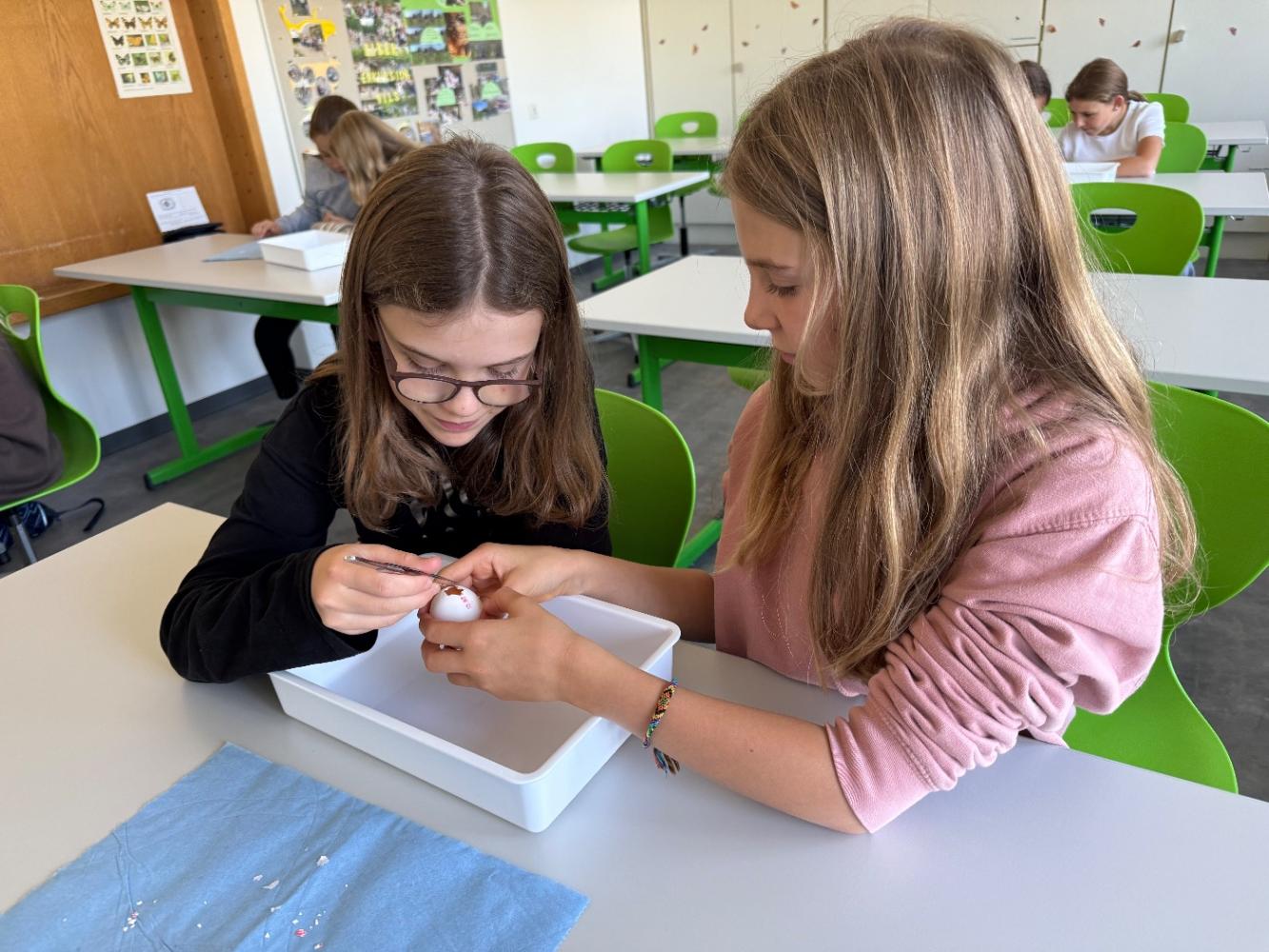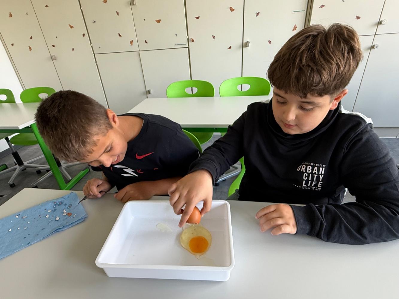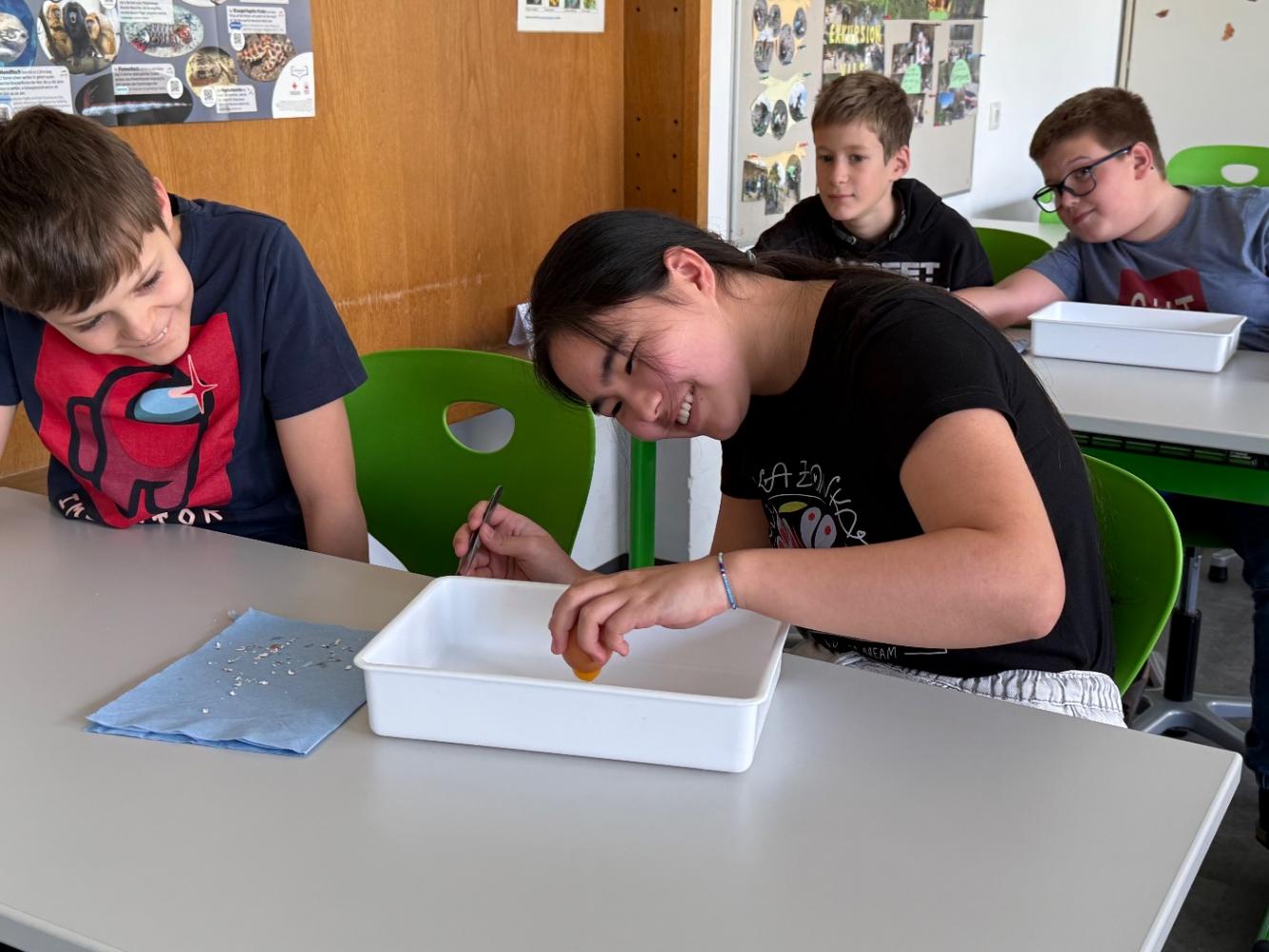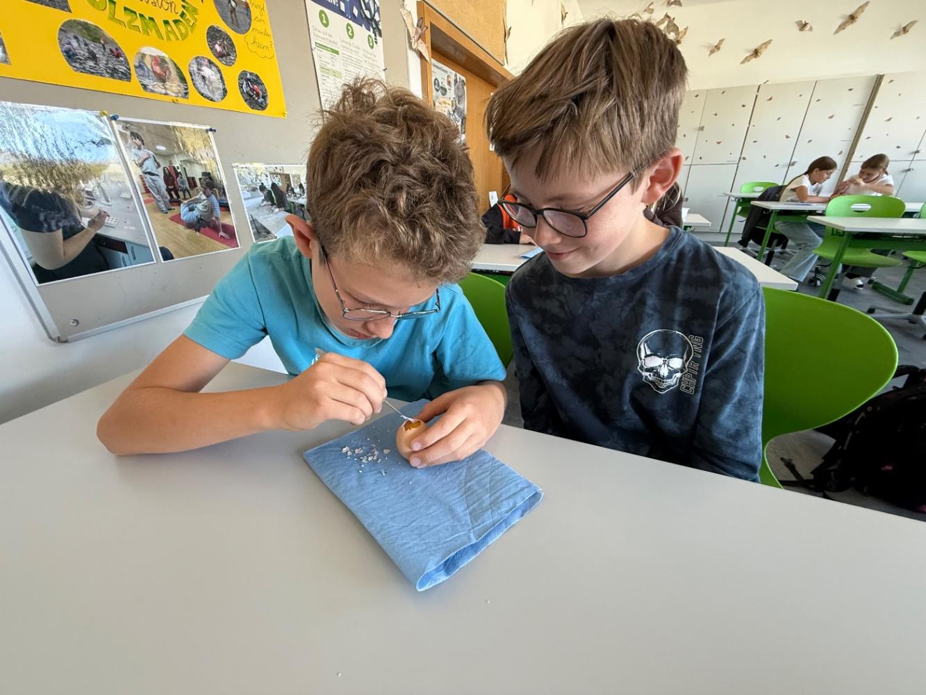Mit nur wenigen Handgriffen entdeckten die Schüler:innen Strukturen, die beim alltäglichen Gebrauch von Eiern der Aufmerksamkeit entgehen.