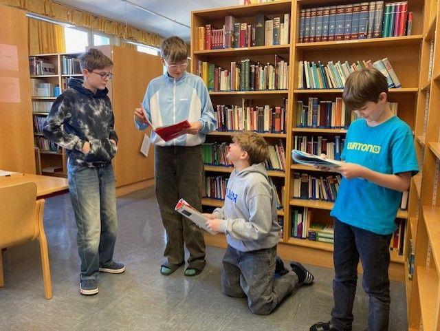 Als Frau Professor Seeber letzte Woche im Rahmen des Deutschunterrichts den „Erlkönig“ besprach, gefiel diese Ballade den SchülerInnen der 3d so gut, dass sie diese in Gruppen aufführen wollten. Die Darbietungen, die schließlich entstanden sind, sind an Kreativität, Schauspielkunst und Humor kaum zu überbieten. Danke für diese abwechslungsreichen Aufführungen in der Schulbibliothek!