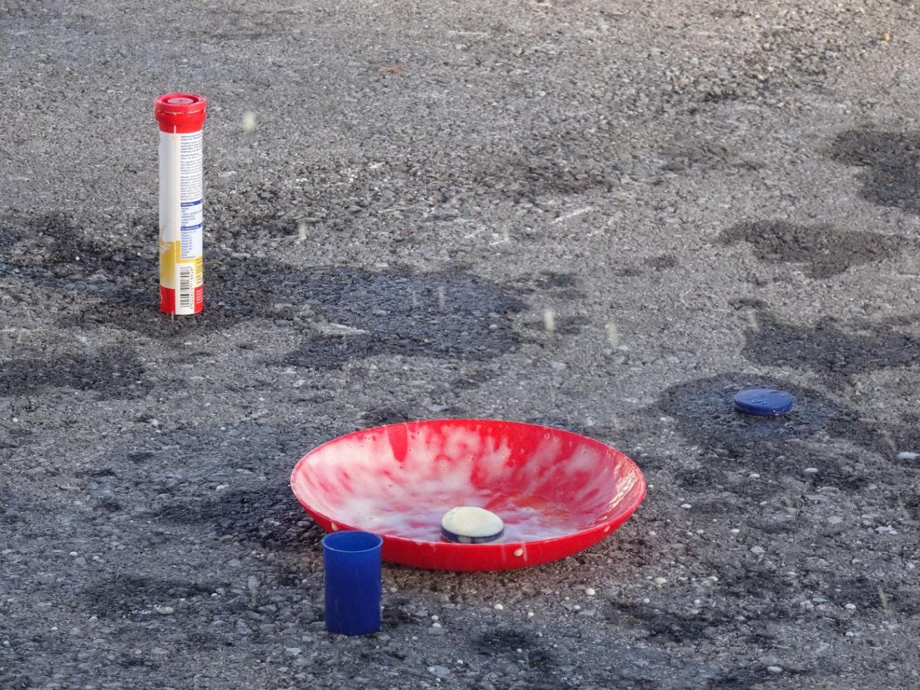 - Zutaten: Eine Filmdose, eine Brausetablette und etwas Wasser.