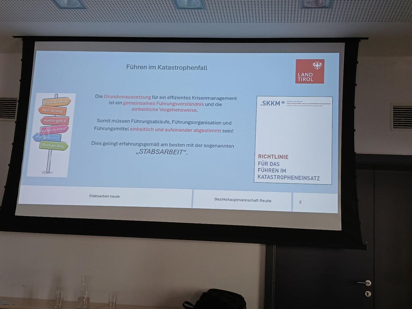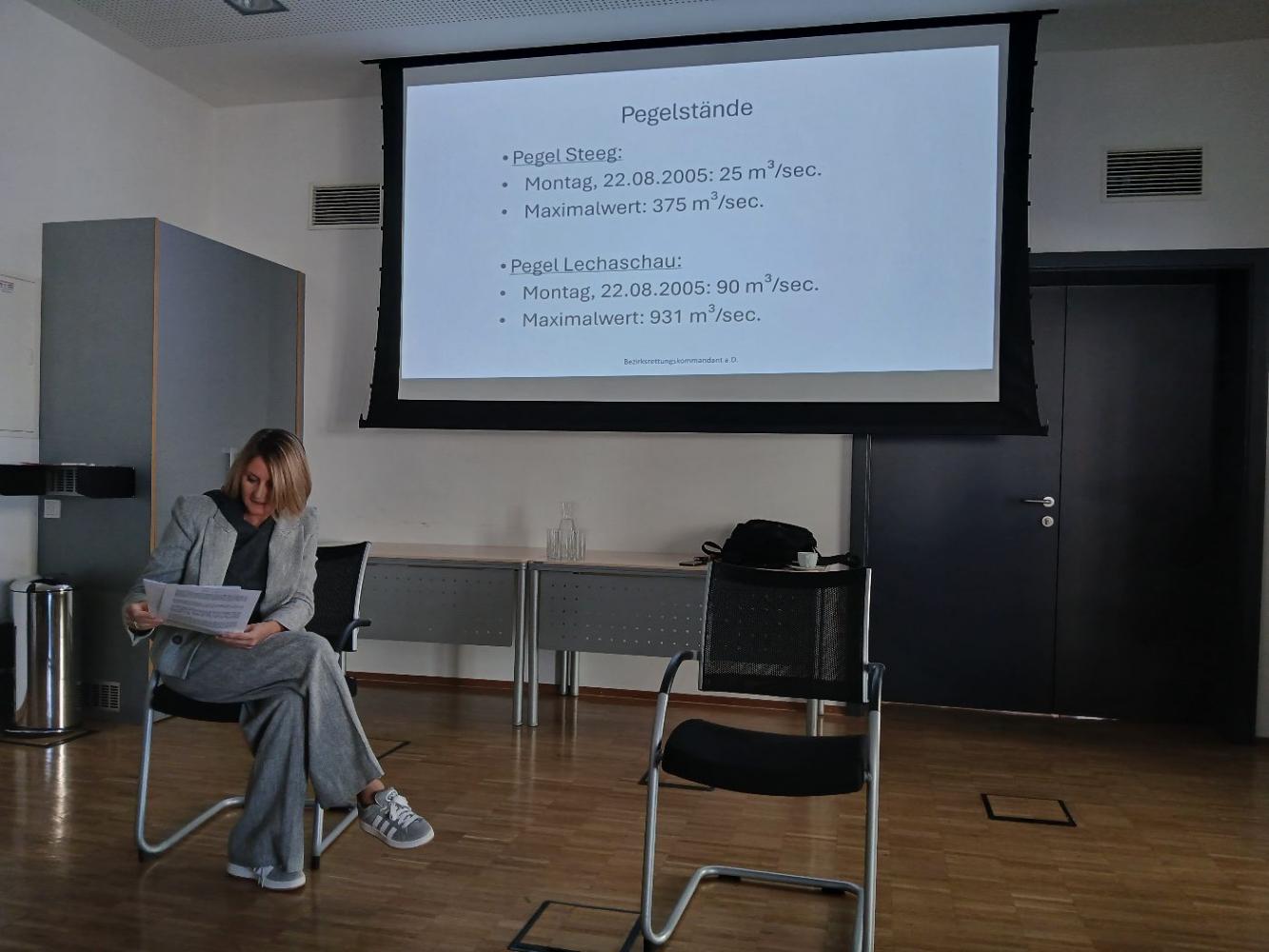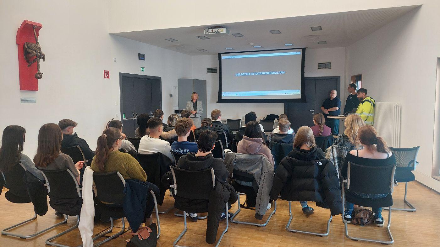 Im Rahmen des Besuchs erhielten sie einen spannenden Einblick in die Arbeit des Katastrophenschutzes. Ein gemeinsamer Vortrag von Bezirkshauptfrau Mag. Katharina Rumpf, Herrn Bezirksrettungskommandanten a. D. Michael Schweiger MSc., dem Leiter des Wasserbauamtes Reutte Herrn DI Florian Keller und Herrn Andreas Schautzgy, Referent für Zivil- und Katastrophenschutz der BH Reutte, über das Hochwasserereignis im Jahr 2005 veranschaulichte eindrucksvoll die damaligen Herausforderungen sowie die Erfahrungen, die daraus gewonnen werden konnten. Anhand dieses Beispiels wurde den Jugendlichen gezeigt, wie im Katastrophenfall die Zusammenarbeit und das Zusammenwirken der verschiedenen Stäbe und Einsatzorganisationen funktionieren kann, und welche Maßnahmen in Bezug auf Hochwasserschutz seit damals getroffen wurden.