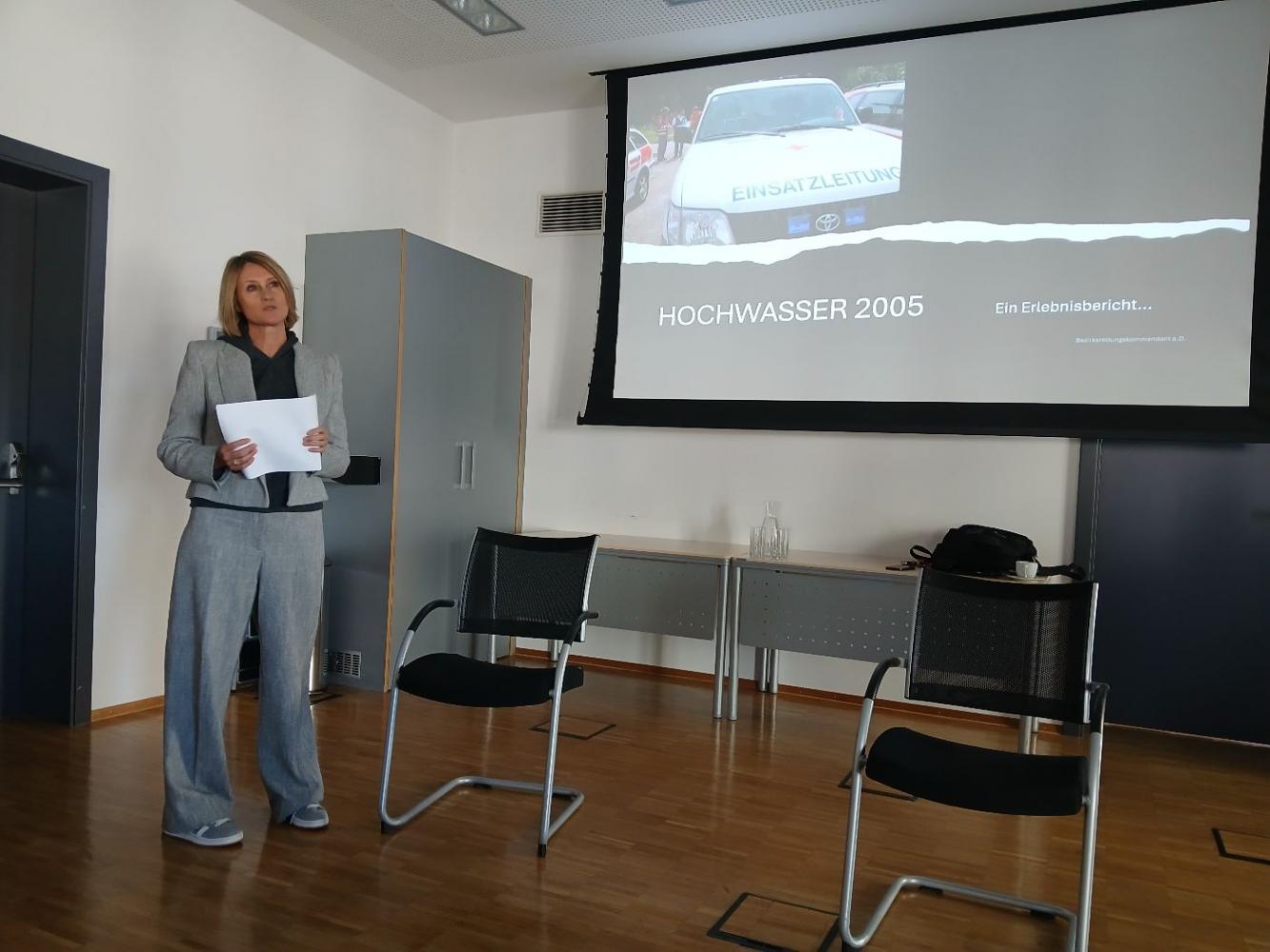 Mag. Katharina Rumpf teilte mit den Jugendlichen ihr Einsatztagebuch und zeigte authentisch und eindrucksvoll, welche bangen Stunden im Hochwassereinsatz 2005 besonders in den Nachtstunden, zusammen mit ihrem Team, zu bewältigen waren. Bild- und Tonmaterial untermauerten die Expertise aller Vortragenden beeindruckend.