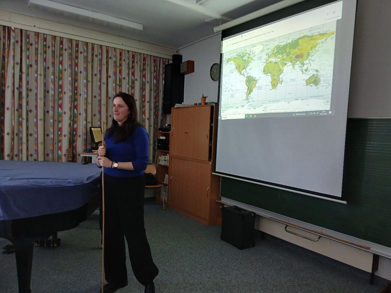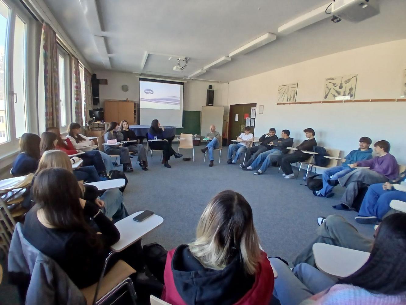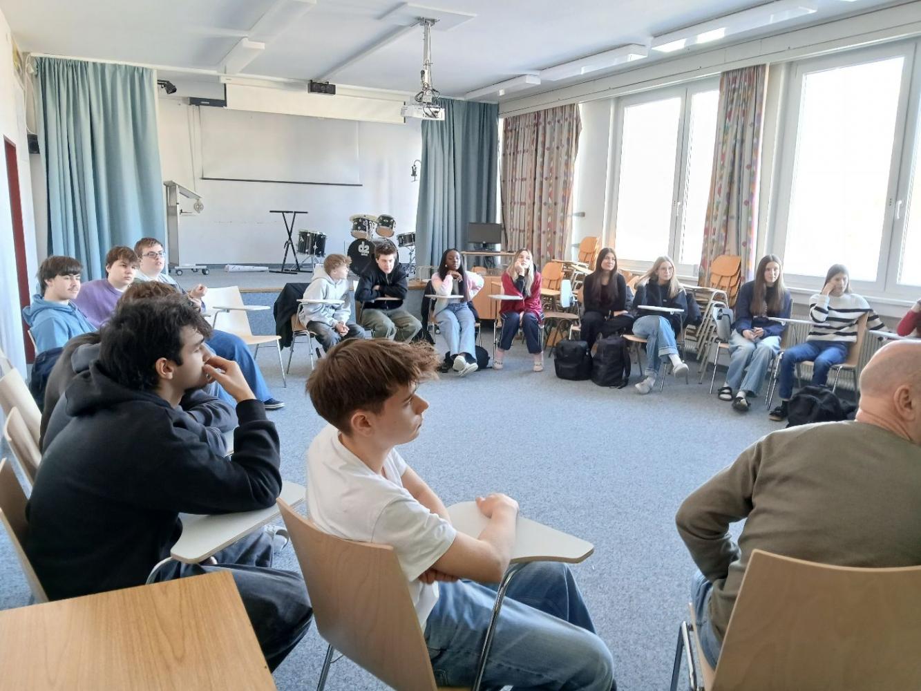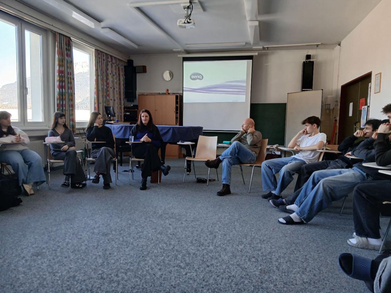 In einer Diskussionsrunde informierte Jenni unsere Schüler:innen über internationale Diplomatie und Wirtschaftszusammenhänge, machte ein Gedankenexperiment zum Thema Wasser und zeigte durch klare Worte, wie privilegiert die westliche Welt ist.