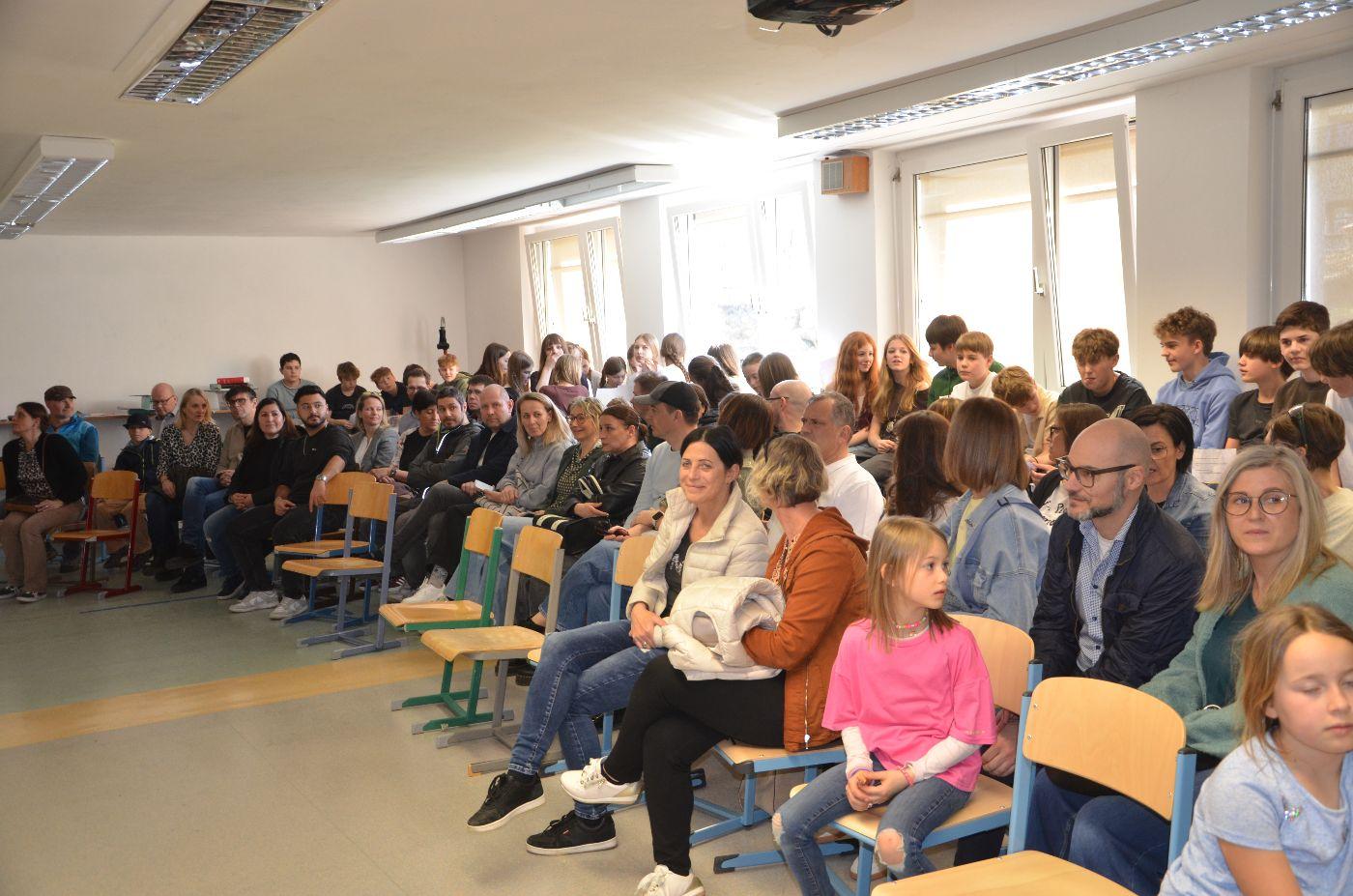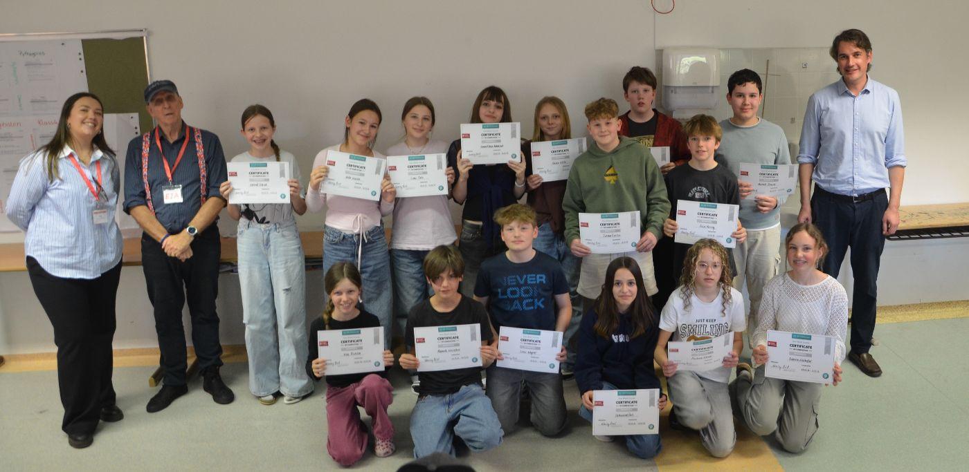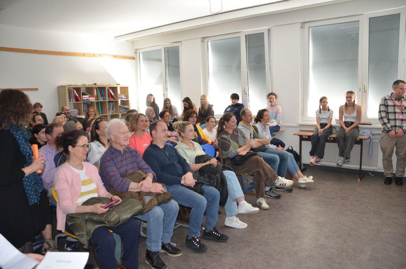 Eingeladen waren die Eltern, die zahlreich erschienen waren, aber auch Lehrerinnen und Lehrer. Alle waren davon beeindruckt, wie kompetent die Buben und Mädchen in der Fremdsprache vor Publikum agierten. Das motiviert sicher alle, in den nächsten Wochen vermehrt Englisch zu sprechen, zu hören, zu lesen und zu schreiben, um den Spirit der Woche mitzunehmen.