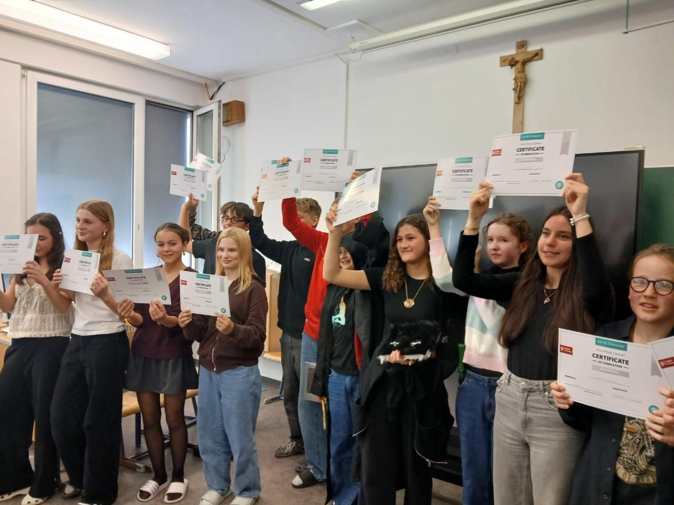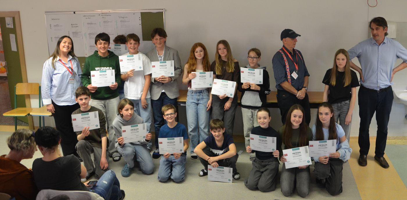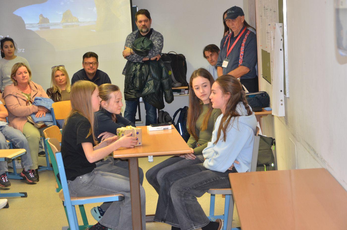 Eingeladen waren die Eltern, die zahlreich erschienen waren, aber auch Lehrerinnen und Lehrer. Alle waren davon beeindruckt, wie kompetent die Buben und Mädchen in der Fremdsprache vor Publikum agierten. Das motiviert sicher alle, in den nächsten Wochen vermehrt Englisch zu sprechen, zu hören, zu lesen und zu schreiben, um den Spirit der Woche mitzunehmen.