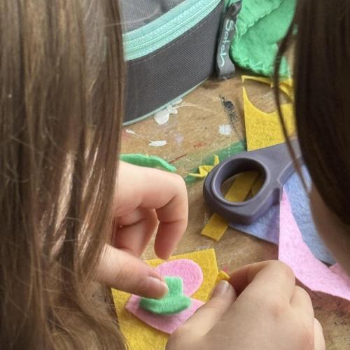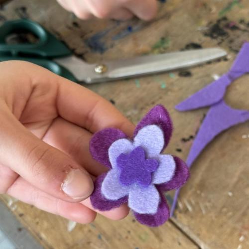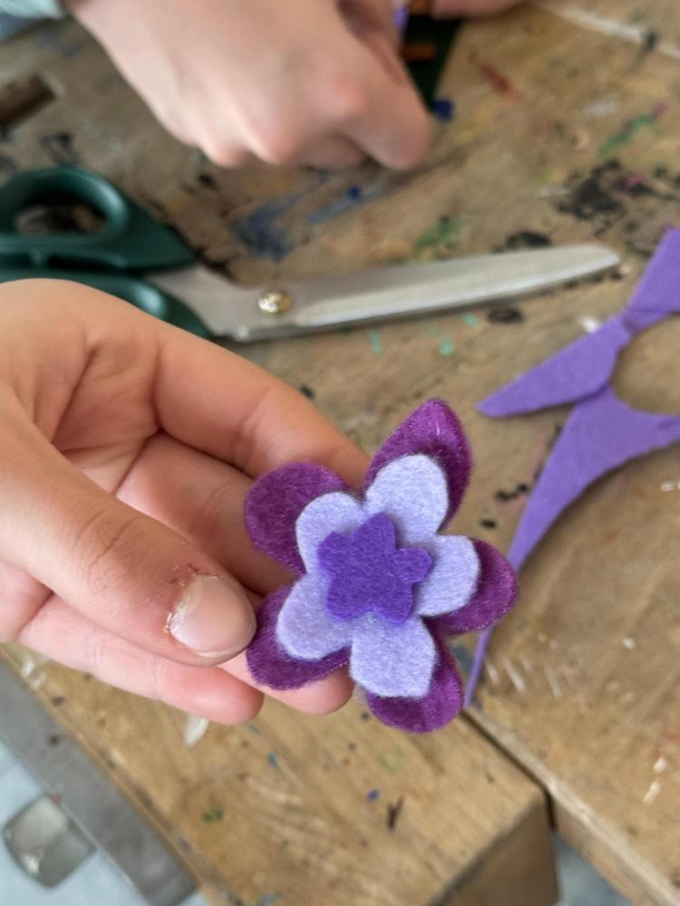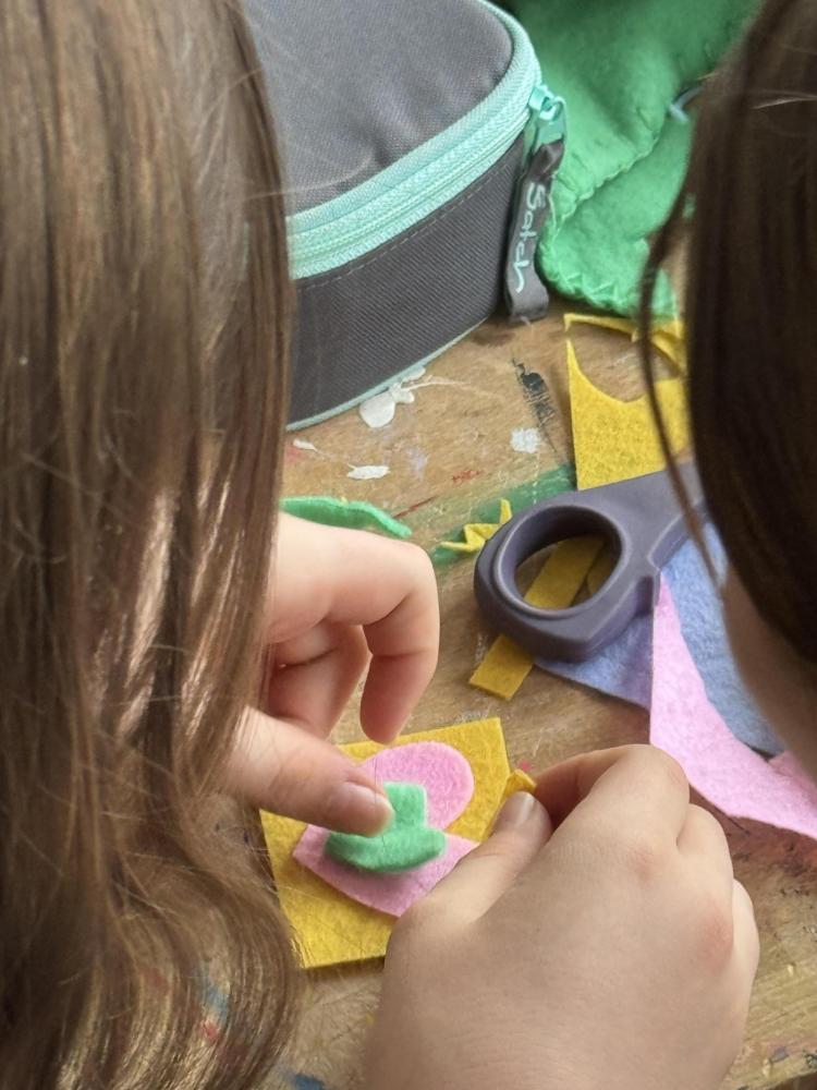 Aus Filz nähten sie zahlreiche kleine Anhänger, die sie selbst entwarfen und gestalteten. Dabei entstanden unterschiedlichste Motive – geometrische Formen, Herzen, Blumen, kleine Tiere und viele weitere fantasievolle Ideen.