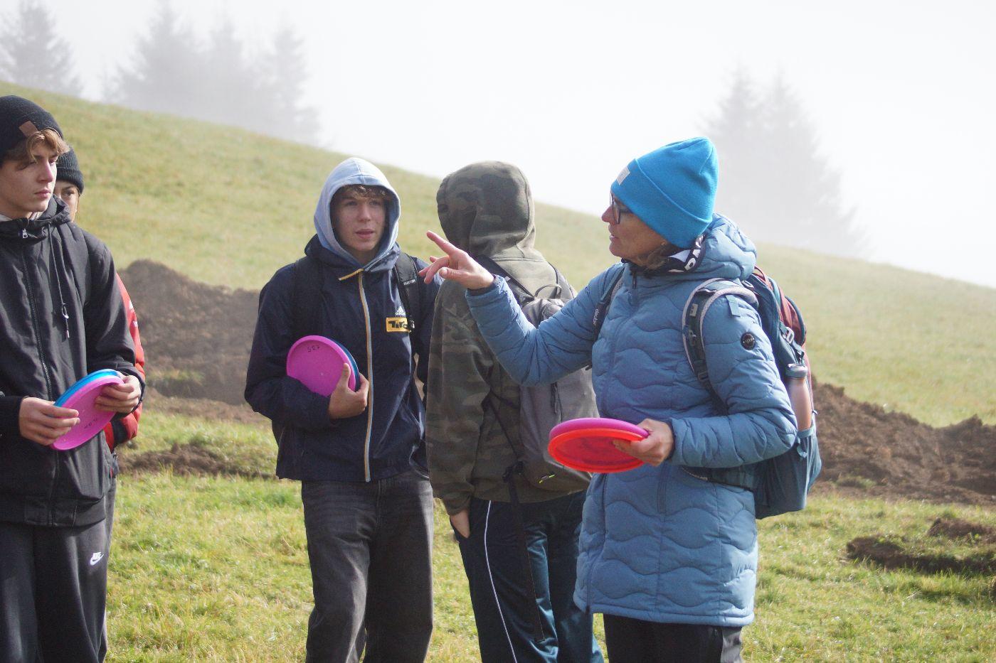 Nach einer kurzen Einführung in die Regeln und Technik des Discgolfens wurden die ersten Bahnen in Angriff genommen. Und siehe da – pünktlich zur zweiten Runde verzogen sich die Wolken, und die Sonne kämpfte sich langsam durch. Mit jedem Wurf und jeder gelungenen Scheibe hellten sich nicht nur der Himmel, sondern auch die Gesichter der SchülerInnen auf.