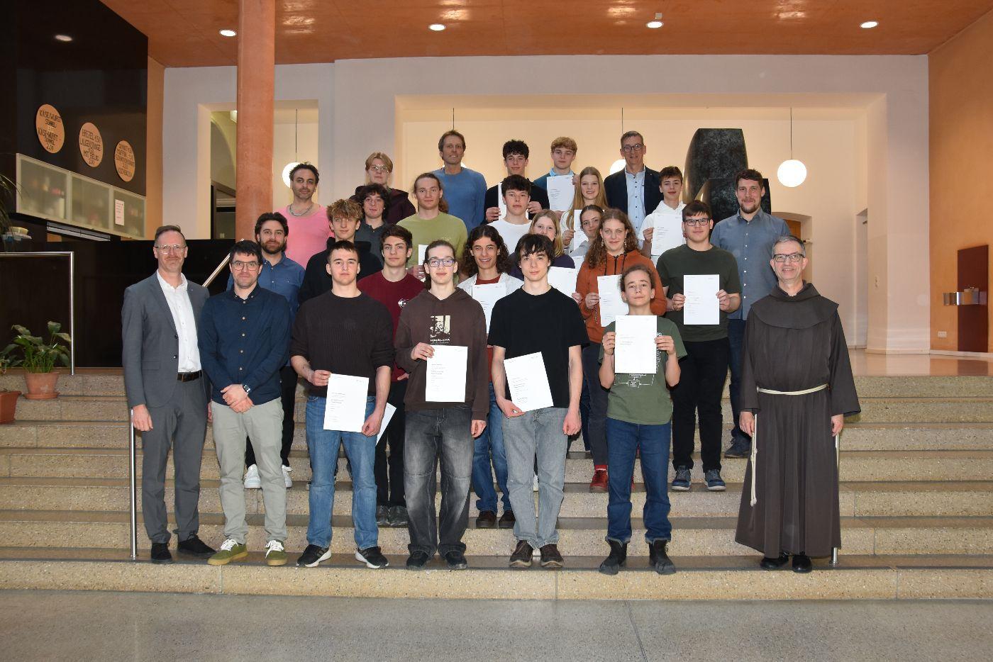 Beim diesjährigen Schulwettbewerb der Physikolympiade setzten sich die Favoriten Felix Petrini und Philip Wötzinger (beide 8a) souverän durch. Besonders erfreulich war der dritte Platz von Letizia Jourez (7b), der zeigt, dass auch Mädchen im naturwissenschaftlichen Wettbewerb stark vertreten sind.