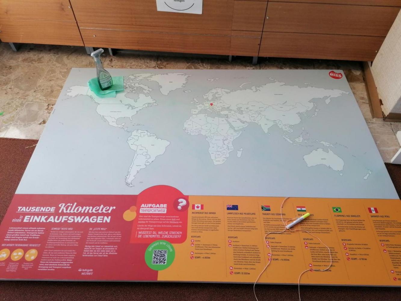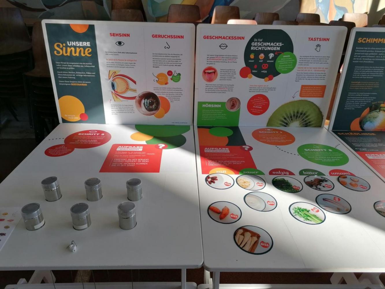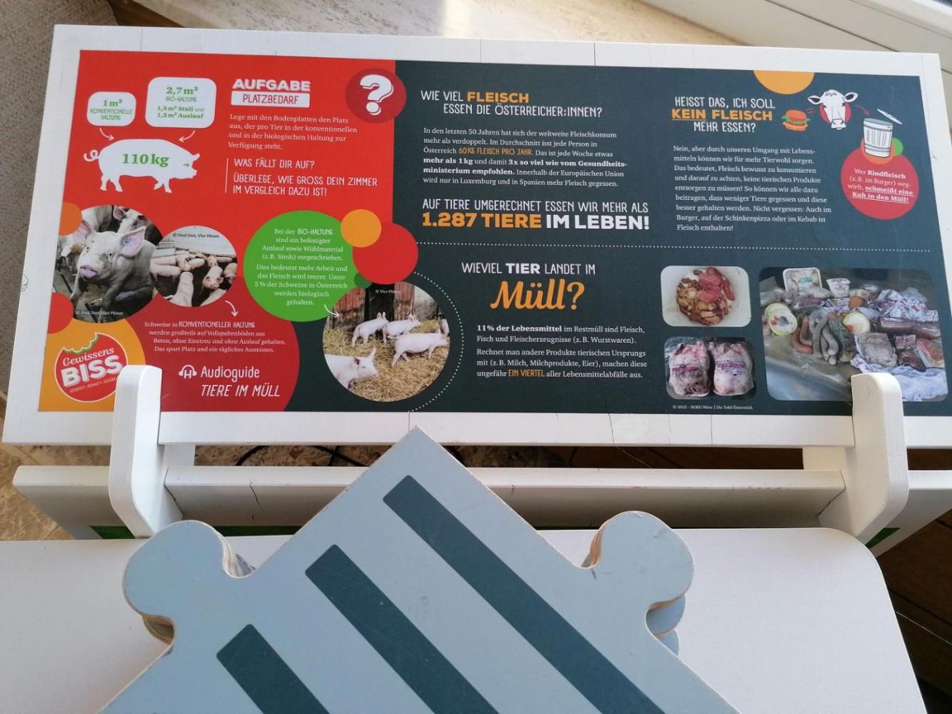 Die 3C hat im RK-Unterricht die interaktive Ausstellung (vgl. dazu Bericht vom 11.12.2025 von Prof. Gabriela Hanus) besucht. Paarweise haben wir unterschiedliche Stationen erkundet und auf diese Weise bekamen wir einen Eindruck, wie wenig Platz ein Schwein bei konventioneller (Spalten!-) Bodenhaltung im Vergleich zum Bioschwein hat, das auf Stroh wohnt, wie viele Kilometer Reis, Bananen, Weintrauben etc. auf dem Weg in unsere Küchen sammeln, wie uns der Seh-, Geruchs- und Geschmackssinn helfen zu testen, was noch genießbar ist, dass das Mindesthaltbarkeitsdatum bei vielen Lebensmitteln ein wenig bis ganz weit überschritten werden kann etc. Dass Lebensmittelverschwendung nicht nur ökologische, sondern auch soziale (negative) Konsequenzen hat, wird in der Ausstellung ebenso thematisiert.
