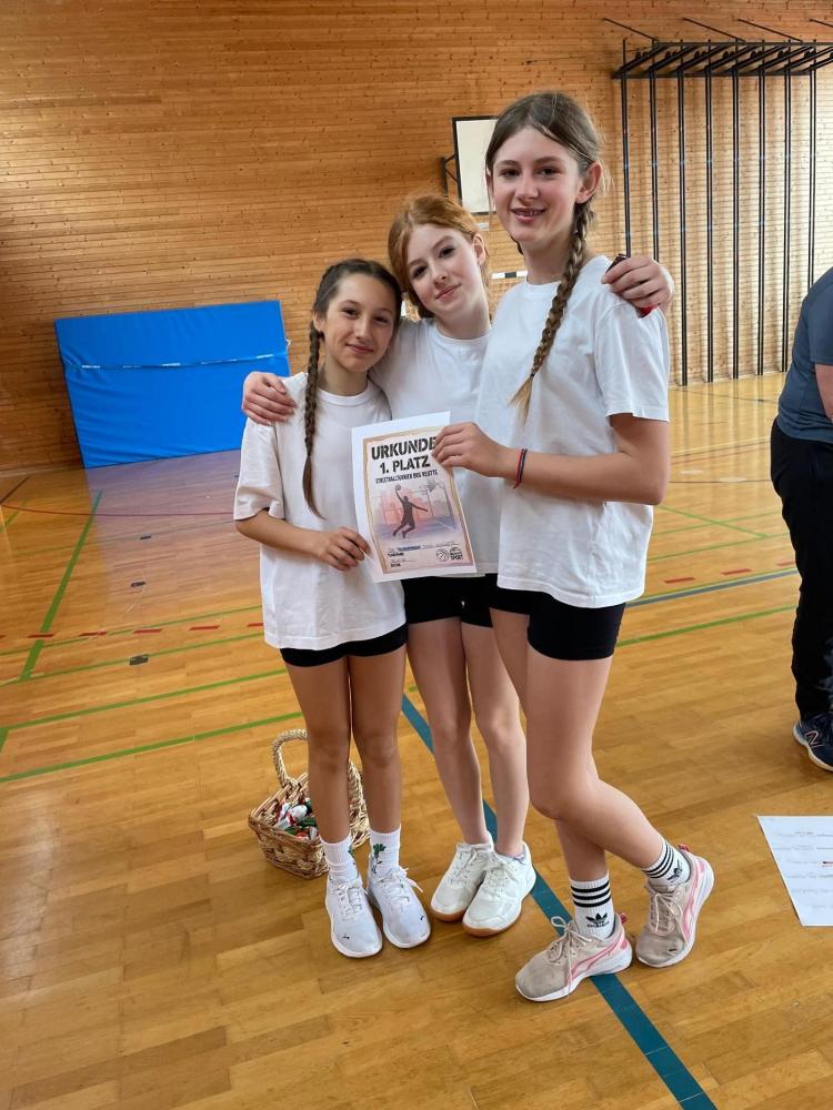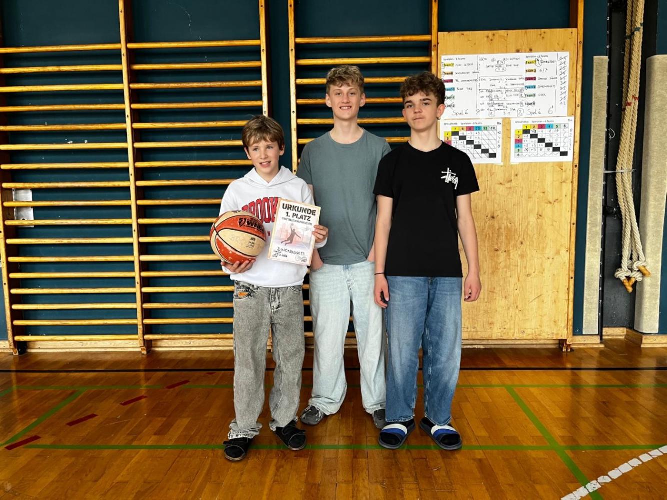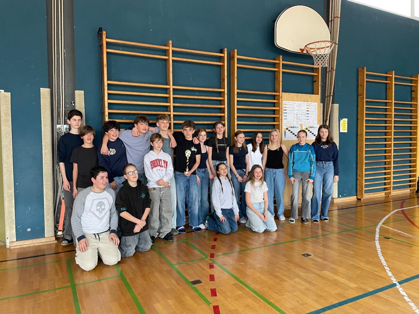 Die Plätze 1-3 wurden mit einer Urkunde geehrt. Zusätzlich wurde eine Klassen-Gesamtwertung erstellt – die erfolgreichste Klasse durfte sich über einen Pokal freuen: Die Klasse 3B gewann die Klassenwertung und kann nun den Wanderpokal bis zum nächsten Basketballturnier im Klassenraum schön feierlich aufstellen!