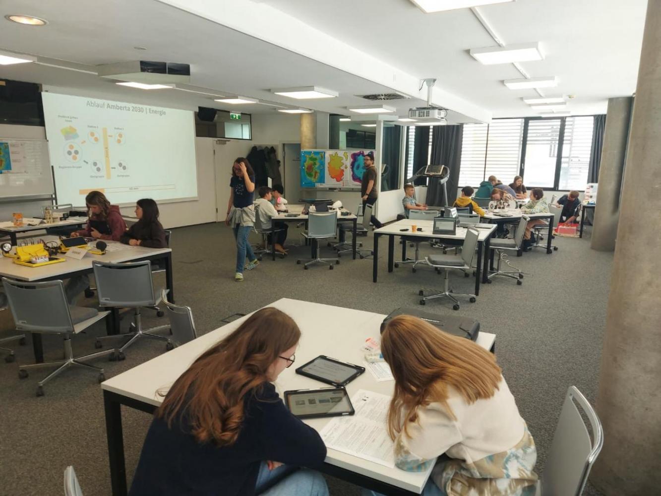 Ein zentraler Bestandteil des Projekts ist ein Workshop zu alternativen Energiequellen in Innsbruck. Dabei planen die Schüler:innen einen Vormittag lang mit Hilfe von Experimenten und Forschungsaufträgen die Energiezukunft der fiktiven Insel Amberta.