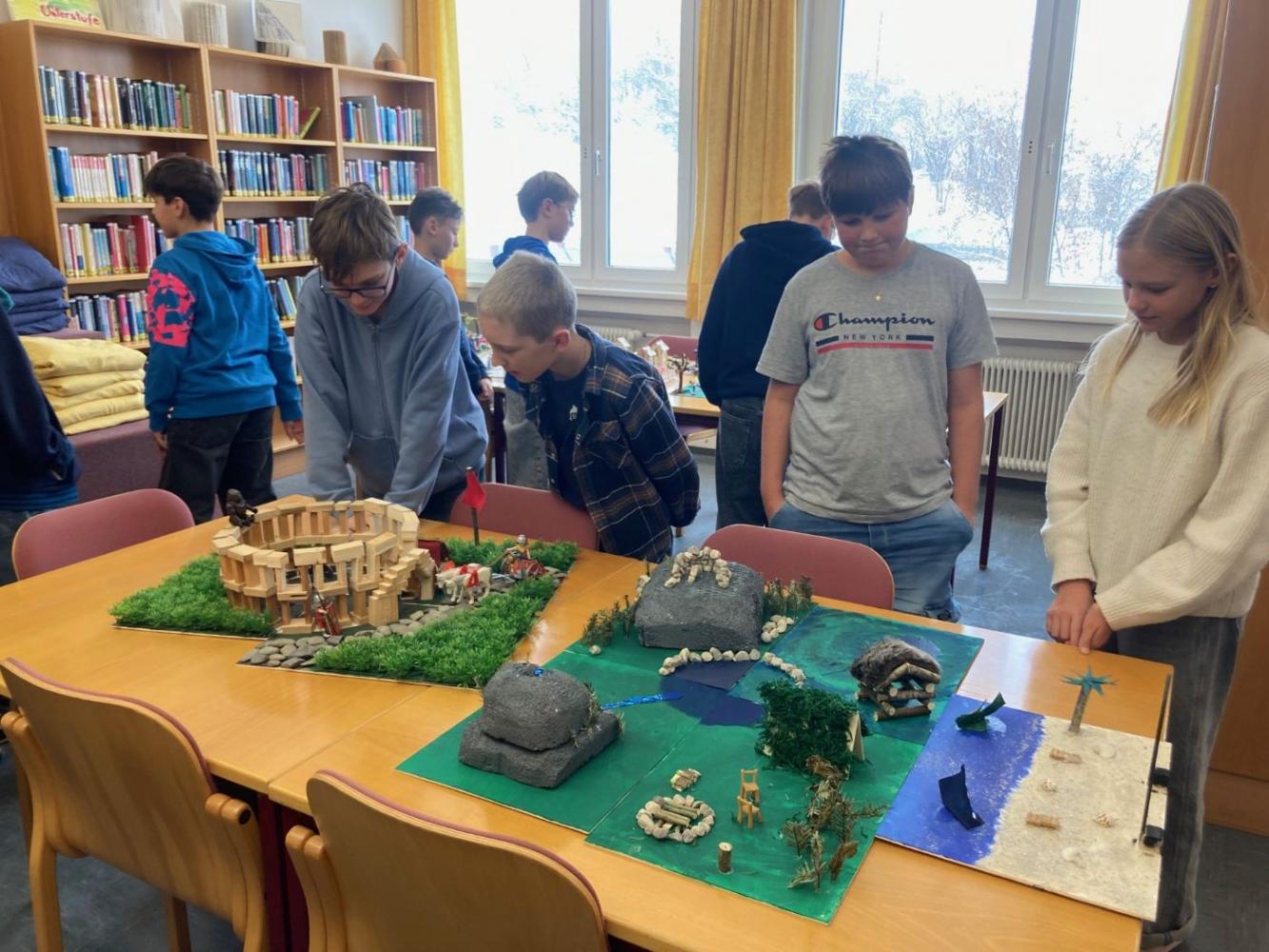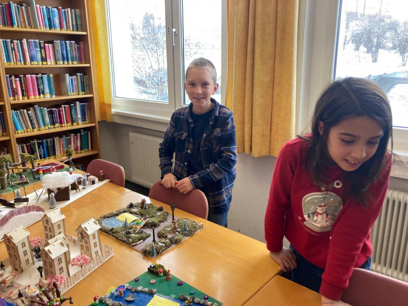 Wieder einmal wurde unsere Schulbibliothek durch die Miniwelten und Wichtelwelten der 1. und 3. Klassen verschönert. Durch die freie Aufgabenstellung entstanden individuelle maßstabgetreue Welten. Beeindruckend sind wieder die vielen originellen Details, von denen man bei jeder Betrachtung neue findet. Die Ausstellung ist eine Anerkennung für unsere Schülerinnen und Schüler.