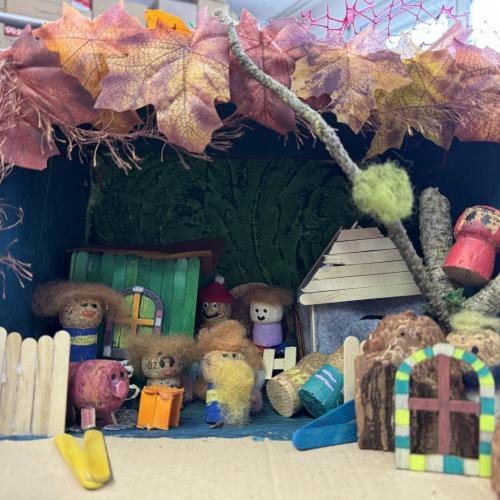 Im Werkunterricht der ersten Klassen entstanden kreative Wichtelwelten.
